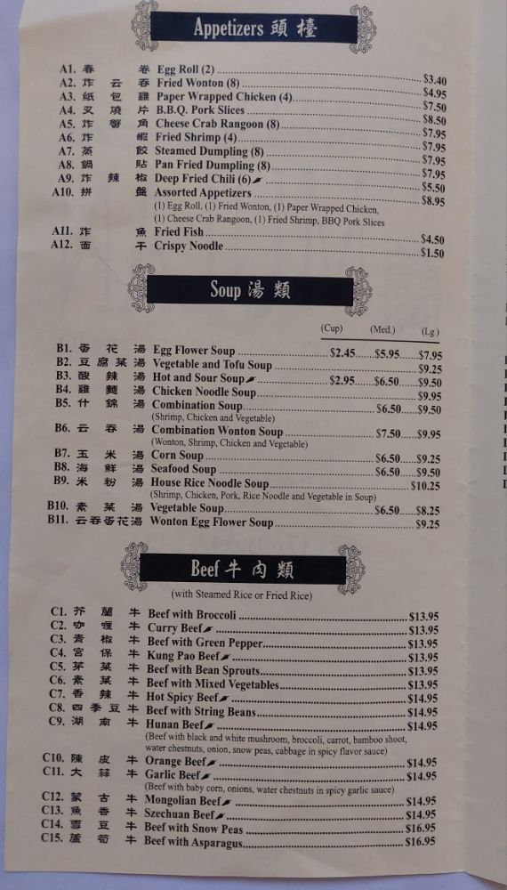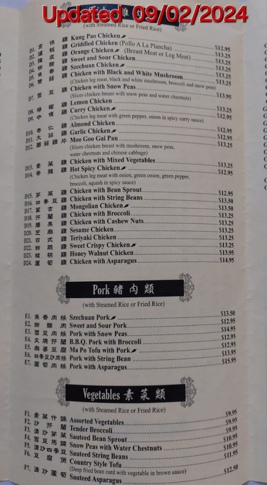 Introducing the menu at New Mulan Chinese Restaurant, located in Indio, CA, offers a variety of dining utilities such as takeout, reservations, delivery, and many vegetarian options. This casual and quiet establishment is perfect for groups, kids, lunch, and dinner. With convenient amenities like private lot parking, waiter service, and free Wi-Fi, customers can enjoy their meals hassle-free. The menu includes beer & wine options, outdoor seating, catering services, and even drive-thru for convenience. Additionally, the restaurant offers heated and covered outdoor seating, private dining options, and bike parking. Customers have praised the improved food quality, generous portions, and affordable prices. Overall, New Mulan Chinese Restaurant provides tasty, well-prepared Chinese cuisine with friendly service in a clean and casual setting.